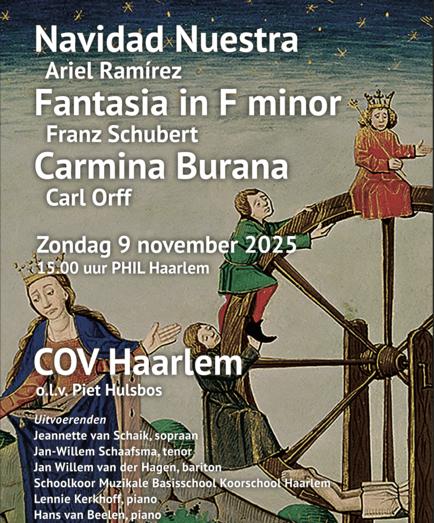 Het duurt nog even voordat het Kerstmis is, maar tijdens het najaarsconcert van de COV Haarlem op zondagmiddag 9 november a.s. wordt het kerstverhaal alvast op bijzondere wijze ten gehore gebracht. De Argentijnse componist Ariel Ramírez, vooral bekend van de Misa Criolla, zette in Navidad Nuestra het kerstverhaal op muziek. Die muziek is onmiskenbaar Argentijns: elk van de zes delen is verbonden met een streek in Argentinië en gebruikt een ritme dat hoort bij de volksmuziek in die streek.